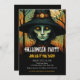 A bruxa horrorosa encara o convite da festa de Halloween.