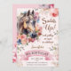 Convite Horse 9º Aniversário Rapariga Floral Rosa Saddle