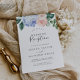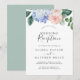 Este convite de recepção de casamento branco com hortênsia azul elegante é perfeito para uma festa pós-fuga romântica na primavera ou verão. O design floral clássico apresenta hortênsias em azul suave em aquarela acentuadas com flores rosa bege neutro e folhas verdes. Os cartões de RSVP são vendidos separadamente, ou você pode adicionar informações de RSVP no verso do cartão.