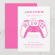 Level up her birthday with this fun and girly gamer invitation! Designed with a bold hot pink color and game controller graphics, it’s perfect for girls who love gaming. Easy to personalize with party details and available as a printed card or digital download. A great choice for a cool and modern video game-themed birthday party.