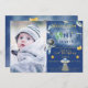 Adorável convite de Aniversário do bebê com astronauta, foguetes, Terra e estrelas sobre fundo azul escuro. Sacudir o nosso convite para ver uma estrela cadente de volta. Visite nosso compro para toda a nossa linha, incluindo fralda correspondente e cartões de livro.