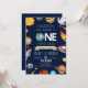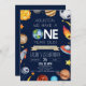 Este é um Houston que temos um Convite de festas Azul do Espaço Exterior de 1 ano!