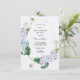 Chá de fraldas de longa distância por convite por correio com verde de cor d'água com hífens azuis e roxas em um quadro de ouro redondo. Alternativo perfeito quando os entes queridos não podem se juntar para um chá. Personalize com suas informações ou clique em "Clique para personalizar mais" para editar estilos de fonte, tamanho e cores.