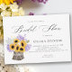 Celebrate love with this rustic elegant bridal shower invitation, featuring a hand-painted digital watercolor bouquet of lush hydrangeas, cheerful sunflowers, fragrant lavender, golden wheat, and delicate baby's breath. This romantic and charming floral illustration brings a soft, feminine touch to your bridal shower stationery, making it perfect for barn, garden, backyard, or outdoor bridal showers with a rustic, country, or vintage theme.