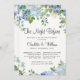 Convite Hydrangeas Azuis Claras Janto de Ensaio Chic Flora