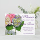 Este romântico floral rosa e roxo em mason jar - Chá de panela - é perfeito para qualquer casamento formal, botânico, floral, romântico, ao ar livre, rústico, vintage. É uma excelente escolha para qualquer primavera ou noiva de verão. Torne-o facilmente seu, selecionando Personalizar este modelo e digitando suas informações. Em segundos você verá seus convites únicos e incríveis! Hídranga rosa chocante do meu jardim!