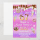 Girl sweets, candy, ice cream dripping, waffle, donuts 6th birthday invitation.