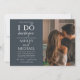 Crie o Convite para Festa de noivado de Casais quic perfeitos com este design branco e azul empoeirado de 2 fotos, com sua foto de noivado vertical na frente. A parte traseira da placa apresenta sua foto de noivado horizontal favorita. Copyright Elegant Invites, todos os direitos reservados.