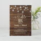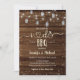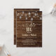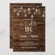 Este convite elegante apresenta luzes brilhantes de cordas e frascos de pedras com um fundo de madeira rústica.