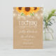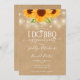 Luzes bonito de cordas e girassóis decoram seus detalhes especiais de celebração de festas de noivado, em tipografia elegante em fundo kraft rústico. O reverso apresenta suas iniciais de monograma num girassol correspondente. Projetado por Thisnotme©