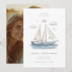 Elegante Moderno Fotografia de Iate a Vela em Aquarela para Save the Date - Defina o tom do seu dia especial com este convite de Save the Date fotográfico de tema náutico deslumbrante. Um veleiro gracioso em aquarela desliza sem esforço por um oceano sereno e azul-safira, suas velas inflando suavemente na brisa. Acima, nuvens macias e tênues pairam pelo céu, enquanto gaivotas delicadas voam graciosamente, completando a atmosfera tranquila da costa. Sua bela foto é apresentada em sangria no verso do Save the Date.