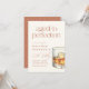 Um convite simples e elegante para qualquer aniversário adulto de marco. Na frente do cartão lê-se "envelhecido até à perfeição" na elegante tipografia serif, seguida dos detalhes do partido alinhados à esquerda. À direita, há um vidro de uísque pintado à mão. Cartões invertem para um padrão de diamante contra um fundo laranja queimado. Veja a coleção vinculada nesta página para itens correspondentes ou visite nossa loja para mais convites de aniversário.