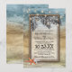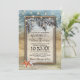 Convites de casamento de destino de praia com fundo de praia abstrato rústico, luzes cintilantes, estrela-do-mar, folhas de palmeira e modelo de texto de casamento moderno.