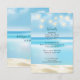 Um oceano azul suave banha uma praia arenosa neste cartão de inserção de casamento ou recepção que pode ser usado para um casamento com tema de praia ou oceano, um casamento de destino tropical, ou qualquer celebração de recepção apenas com tema de praia. Luzes de fadas estão penduradas ao longo da parte superior da imagem. Também pode ser personalizado para uma festa de noivado, celebração de aniversário ou festa de aniversário. Disponível com produtos correspondentes.
