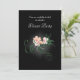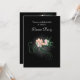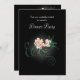 Um convite de festas elegante e janto com ilustração de algumas delicadas flores cor-de-rosa florescendo com girinos verdes e folhas sobre fundo preto. As cinzas luminosas brilhantes centradas em torno das flores acentuam e iluminam sua beleza.