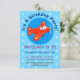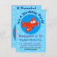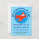 Este feliz avião vermelho está voando para uma festa! Desenhado no estilo de ilustração de desenho animado em um fundo azul para uma celebração divertida!