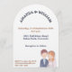 O convite de casamento apresenta uma ilustração encantadora de uma noiva e um noivo. O noivo é retratado com cabelo castanho curto, tez clara e está vestindo um paletó azul-marinho sobre uma camisa de colarinho azul-claro e uma gravata branca. Ele tem um pequeno boutonniere preso ao seu lapela.