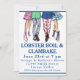 Convite Ilustração de Moda Lagosta Ferver Clambake Festa