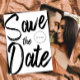 Chic moderno Salve a placa de data com tipografia em negrito de grande tamanho no estilo de marcador preto sobre um fundo branco limpo. Nome personalizado e círculo de data na frente. O verso é perfeito para mostrar sua própria foto. Editável clicando no botão "personalizar". Não se esqueça de checar os itens coordenadores na coleção para uma suíte de casamento moderna, divertida e única.