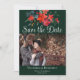 Este maravilhoso Natal Salve a data convite apresenta uma bela aquarela de flores de poinsettia vermelha e folhas de pinho para os feriados sobre sua foto de noivado. Um elegante convite de inverno com uma fotografia festiva de segundo nas costas para as férias. Adicione o seu site de casamento à parte de trás deste cartão floral de poinsettia.