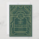 Este convite apresenta uma elegante e luxuosa deco de arte vintage juntamente com uma simples fonte de tipografia serif em bloco com um fundo verde esmeralda e uma fotografia e um Código QR. Esta design funciona bem com todos os temas de casamento e definitivamente um excelente adicional ao seu casamento. Basta personalizar os nomes e o texto em alguns passos fáceis e personalizar o cartão de convite com sua foto do casal feliz e substituir o Código QR pelo seu no verso do convite para dar um toque pessoal agradável ao seu convite. Por favor, observe: as frases "Você é convidado para o casamento de", "&" e "Details+rsvp" juntamente com o quadro de deco de arte, as linhas e formas geométricas na frente e atrás e outros elementos de trabalho de arte gráfico não podem ser editados, movidos ou excluídos, Eles são fixos. Se precisar alterar a cor, você pode personalizar o cartão de convite. Você pode personalizar e personalizar o convite para ajustado das suas necessidades de evento de casamento e clicar em personalizar o convite. Você pode personalizar facilmente o convite com o texto como um download digital e enviá-lo eletronicamente e compartilhá-lo com seus convidados através de mensagem de texto, email ou mídia social. Ou também pode optar por enviar/postar o convite relativo aos seus detalhes aos seus convidados. Ou você pode receber ambos — convite impresso e receber o convite em formato digital como um download instantâneo.