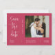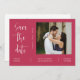 Este convite para salvar a data apresenta caligrafia elegante e letra simples da tipografia sans serif com uma fotografia num fundo viva magenta e um código QR para uma aparência minimalista e moderna limpa, que é uma bela forma de informar sobre o seu próximo casamento. Anuncie à sua família e amigos que vai se casar com este convite e adicione um toque pessoal com belas fotos de você e sua próxima metade melhor. A simplicidade desta design adiciona um toque de elegância ao seu casamento. Funciona bem com muitos temas de casamento e definitivamente um excelente extra para o seu casamento. Basta personalizar os nomes e o texto em alguns passos fáceis e personalizar o cartão de convite com sua foto do casal feliz e substituir o Código QR pelo seu. Por favor, note: a elegante caligrafia dos termos "Salvar a Data" e "Toda história de amor é bonita, mas nossa é a nossa favorita", assim como as linhas e outros trabalho de arte gráficos e elementos não podem ser editados, apagados ou movidos. Eles estão consertados. Se precisar alterar a cor, você pode personalizar o cartão de convite. Você pode personalizar e personalizar o convite para ajustado das suas necessidades de evento de casamento e clicar em personalizar o convite. Você pode personalizar facilmente o convite com o texto como um download digital e enviá-lo eletronicamente e compartilhá-lo com seus convidados através de mensagem de texto, email ou mídia social. Ou também pode optar por enviar/postar o convite relativo aos seus detalhes aos seus convidados. Ou você pode receber ambos — convite impresso e receber o convite em formato digital como um download instantâneo.