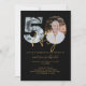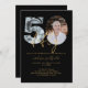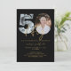 Convite Imagem Dourada de Foto Chic Elegant Black 50th Bir
