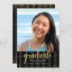 Tenha orgulho, alegria e mostre este marco do seu formando favorito! Enviar este incrível, moderno, guião de tipografia de ouro cintilante contra um fundo listrado preto com pontos dourados, um convite personalizado para um evento a lembrar. Personalize o texto personalizado com o nome do seu formando, ano escolar e ano de aula. O texto do convite do local do evento está no verso. Garantido para adicionar diversão na moda à sua ocasião especial! Na frente, digite o nome do seu formando, ano escolar e de aula, adicione a foto dela, e você pode personalizar facilmente este convite de formatura. As informações personalizadas da parte traseira deste cartão. Por favor, me mande mensagens com quaisquer perguntas ou solicitações.