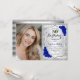 Elegante convite floral feminino para o 50º aniversário com sua foto. Design com falso brilho de prata. Apresenta faixas, rosas azuis reais, fontes de script e confetti. Perfeito para uma festa de comemoração de na moda adulto. Personalize com seus próprios detalhes. Pode ser personalizado para qualquer idade! Impressos convites Zazzle ou modelo de impressão digital instantânea para download.