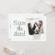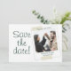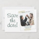 Este estilo de fotografia de tendência salve a data do anúncio da placa apresenta a foto do casal rodeada por um quadro branco. Um design de fita de mascaramento se senta acima e abaixo da foto. Uma fonte de estilo de escrita manual é usada no cartão. A cor da fonte é rosa.