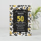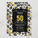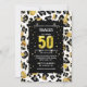 Um design moderno e divertido, com a impressão branca preta e leopardo dourada, infundido com uma falsa lamparina de ouro, na qual aparece uma incisão preta com modelos de texto branco e um grande número de 50 em ouro. Estes são ideais para todos os 50/50 anos e comemorações de negócios. Personalize o texto para se adequar ao seu evento.