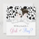 Adorável menino e mulher negra, sexo de vaca revela convite para o chá. Este elegante impressão de vaca revela o convite para chá de fraldas é facilmente personalizado para o seu evento, adicionando detalhes do evento, estilo de fonte, tamanho de fonte e cor e texto. Observe que todos os adesivos, cartões e designs de convite que você encontrará no Zazzle são gráficos impressos sem joias reais, arcos, levantados, gravados, ou peças ou peças adicionadas.