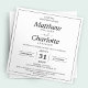 Roteiro elegante convite físico ou digital impresso em branco com letras pretas e um quadro delicado. Personalize-o com os nomes, apelidos, data, local, registro e RSVP do Sr. e Sra. A parte traseira pode ser personalizada com as iniciais do casal.