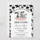 Impressão de Vaca Negra Branca Santa Floral Chá de fraldas de Vaca Convite para o tema Vaca doce Convite para chá de fraldas de leite de vaca doce com um padrão de arco branco e impressão de vaca negra. Este chá de fraldas de vaca sagrada e bonitinho apresenta também uma vaca e um vitelo preto e branco, bem como um arranjo floral azul e rosa. Ideal para alguém que procura um convite de chá de fraldas de vaca sagrado moderno.