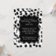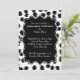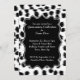 Design de Quinceañera com um impressão animal do teste padrão Dalmatian em preto e branco. Este design monocromático à moda tem um olhar na moda chique. Projetado para uma 15a celebração do aniversário para uma menina que goste dos padrões animais do impressão ou esteja planeando uma festa de aniversário temático preto e branco. Há uma forma extravagante agradável em preto e branco com a escrita feita sob encomenda a ser personalizada.