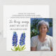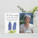 In loving memory, bluebonnets, Texas, Texan, blue floral watercolor, photo, bereavement, grief, memorial, sympathy, funeral, death Thank you card.