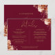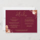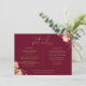 Um cartão de informações de detalhes de casamento floral rústico elegante personalizado com seus detalhes especiais em tipografia dourada estilosa e seus nomes e data de casamento no verso em um fundo de Borgonha. Concebido por Thisisnotme©