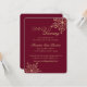Adicione todos os detalhes da receção a este cartão de receção de floco de neve elegante em burgundy e dourado. Complementa os nossos convites de casamento de inverno burgundy Snowflake Elegance. Altere o fundo deste conjunto de convites de casamento de inverno moderno e bonito para qualquer paleta de cores de casamento de inverno.