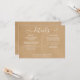 Um elegante cartão de informações de detalhes de casamento personalizado com seus detalhes especiais em tipografia de na moda e seus nomes e data de casamento no verso em uma base de kraft rusticida. Você pode personalizar o fundo para a sua cor favorita do tema do casamento. Projetado por Thisnotme©