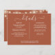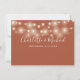 Um elegante cartão de detalhes do casamento de terracotta com luzes de cordas bonito. Personalize com seus detalhes de eventos especiais definidos na tipografia de na moda com seus nomes e data de casamento no sentido inverso. Projetado por Thisnotme©