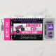 Coloque os motores para funcionar para uma celebração ousada e divertida com este convite de ingresso para caminhão monstro feminino! Projetado com tons vibrantes de rosa quente e roxo real, este convite é perfeito para meninas que amam caminhões grandes, diversão sem limites e uma festa com muita atitude. Com uma ilustração de caminhão monstro legal, layout de ingresso VIP e detalhes de festa personalizáveis, este design traz a emoção de um rali de monstros diretamente para a festa de aniversário da sua filha.