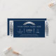 Crie bilhetes de eventos elegantes para o seu negócio ou evento privado usando este design de Bilhete de Evento Admit One azul marinho e prata. Com efeitos de folha de prata falsa, layout profissional com espaço para o nome do seu evento, data, endereço, preço do bilhete, bem como o seu logotipo e termos e condições no verso. Este bilhete de empresa com efeito metálico luxuoso pode ser usado como um passe de entrada para o seu jantar de gala, função de caridade, arrecadação de fundos, show, bilhete de presente de aniversário, casamento ou qualquer outro tipo de evento.