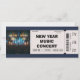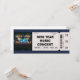 Convite de ingresso para concerto de música de Ano Novo moderno e personalizável com envelope. Perfeito para uma festa pós-feriado, evento de clube ou arrecadação de fundos. Altere facilmente a data (02 de janeiro), hora, preço ($45) e endereço. Um design elegante em azul-marinho e cinza para um evento de música ao vivo.
