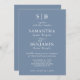 Sinais clássicos de monograma azul empoeirado convites de casamento perfeitos para um casamento com um cenário formal.