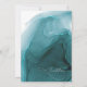 An abstract background reminiscent of liquid ink in shades from deep teal through cyan and white is the backdrop for elegant handwritten script text and modern design layouts in the pieces of this beautiful wedding suite. The wedding invitation shown here features the above and a template to add your own pertinent event information. Search ID762 to see all the coordinating pieces in this set.