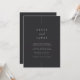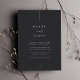 Um belo convite de casamento baseado em tipografia minimalista, com seus nomes em letras clássicas, junto com modernas letras de sotaque escritas à mão. Personalize com seus detalhes de casamento embaixo. Nossa Feira de Cinza faz uma declaração clássica com letras brancas em um fundo preto suave.