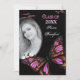 Bom convite para a graduação, focado em belas borboletas rosa. Personalize substituindo a foto da amostra pela foto do formando e mudando TODAS as informações, incluindo o ano, para torná-la sua.