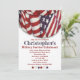 Este design apresenta enfeites vermelhos, brancos e azuis na parte superior e estrelas ao longo da parte inferior. Preencha os campos de texto, remova qualquer texto e/ou clique em personalizar para selecionar uma cor de fonte, tamanho e estilo que preferir.