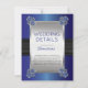 Inserção de detalhes de casamento sofisticada e elegante com fundo de cetim azul safira falso impresso e fita de cetim preta com fechos de canto de diamantes e safira. O design continua no verso para um visual sofisticado e polido. Design original de Holiday Hearts Designs (todos os direitos reservados). Observe que todos os enfeites são impressos.