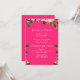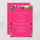 Inserção do Convite de aniversário Floral Branco. Texto branco. Fundo Rosa Quente. Opções de Hotéis e Brunch.